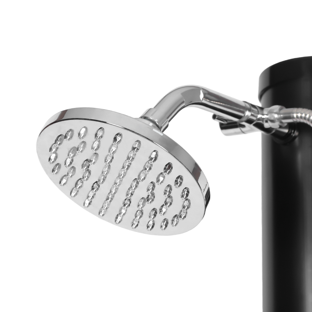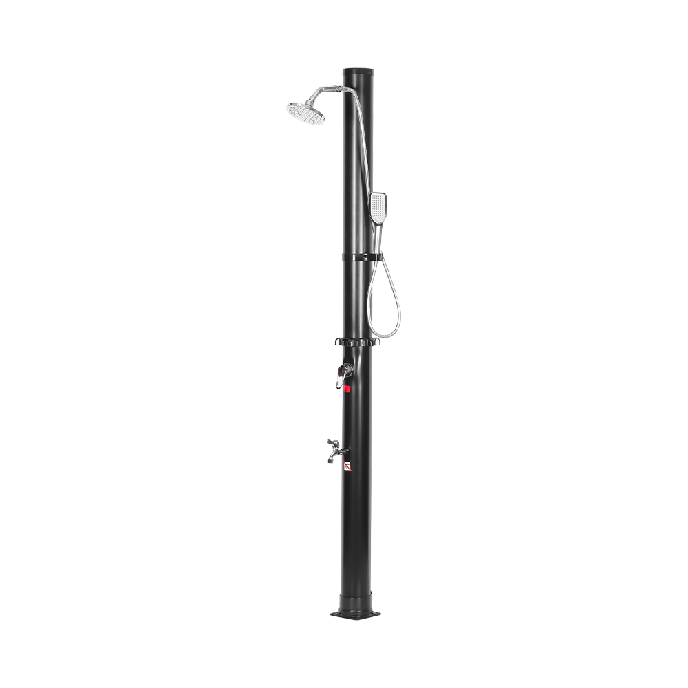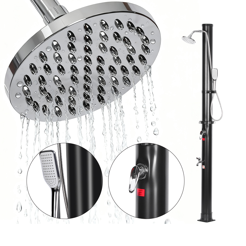 LY18L05-HB 18L dua bagian kepala pancuran krom abs pancuran taman luar ruangan pancuran surya ini mencakup sambungan selang taman yang nyaman untuk memudahkan pengisian dan sumbat pembuangan yang memungkinkan pengosongan cepat saat menyiapkan unit untuk penyimpanan musim dingin. Setelah pipa pancuran terisi, air akan memanas secara alami menggunakan energi matahari, dan keran mixer terintegrasi memudahkan Anda menyesuaikan air ke suhu pilihan Anda untuk pengalaman mandi yang nyaman. Semua komponen diikat erat dengan sekrup untuk memastikan daya tahan, dan untuk pengoperasian yang aman, pancuran harus dipasang dengan benar ke tanah. Instruksi multibahasa yang jelas disediakan untuk memandu Anda melalui instalasi dan penggunaan, menjadikan proses pengaturan mudah dan dapat diandalkan.